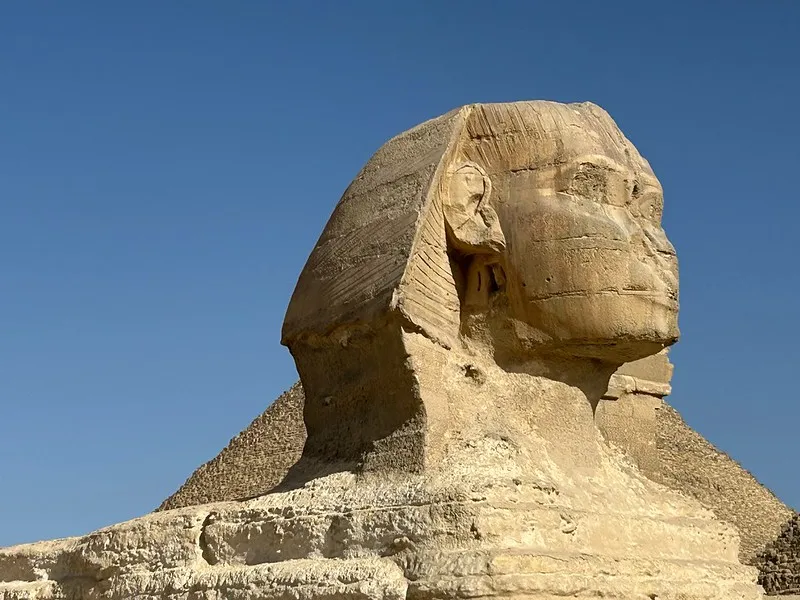 Heute steht ein echtes Abenteuer auf dem Programm: Ihr entdeckt die berühmtesten Sehenswürdigkeiten Ägyptens! Zuerst bestaunt ihr die beeindruckenden Pyramiden von Gizeh mit ihren gigantischen Steinblöcken und ihrer geheimnisvollen Geschichte. Vergesst nicht, auch ein Foto an der ikonischen Sphinx von Gizeh zu machen – der rätselhaften Statue, die seit Tausenden von Jahren über die Pyramiden wacht.