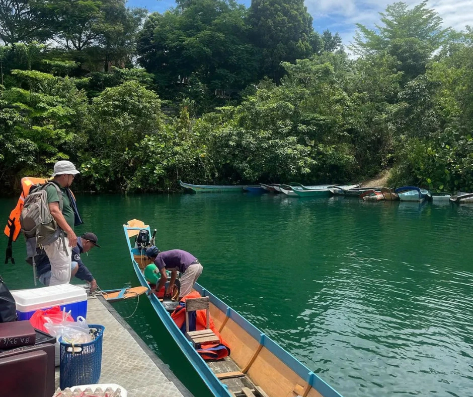 Nach einem Abend voller Geschichten steigen wir am nächsten Tag wieder ins Longboat. Große Netze nehmen wir mit und lernen, wie die Iban mit diesen Netzen fischen. Anschließend genießen wir ein erfrischendes Bad unter einem Wasserfall.