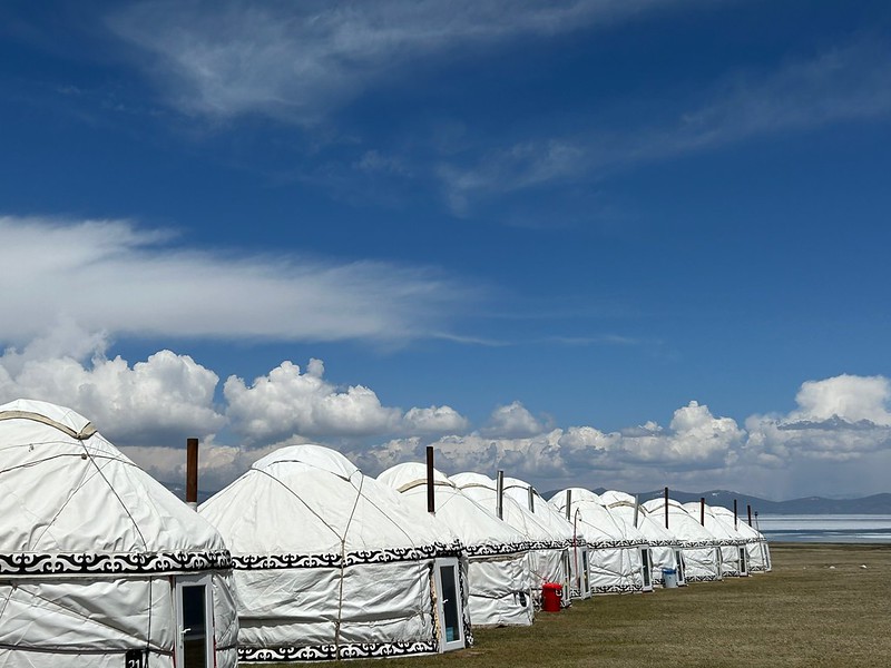 Das Camp verfügt über ein eigenes Restaurant, in dem die Mahlzeiten serviert werden, sowie über Dusch- und Toilettenkabinen. Man könnte es fast als die kirgisische Art von „Glamping“ bezeichnen.