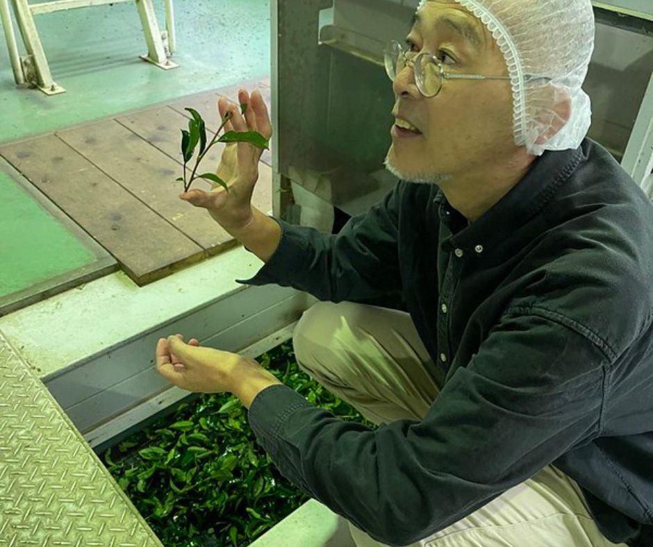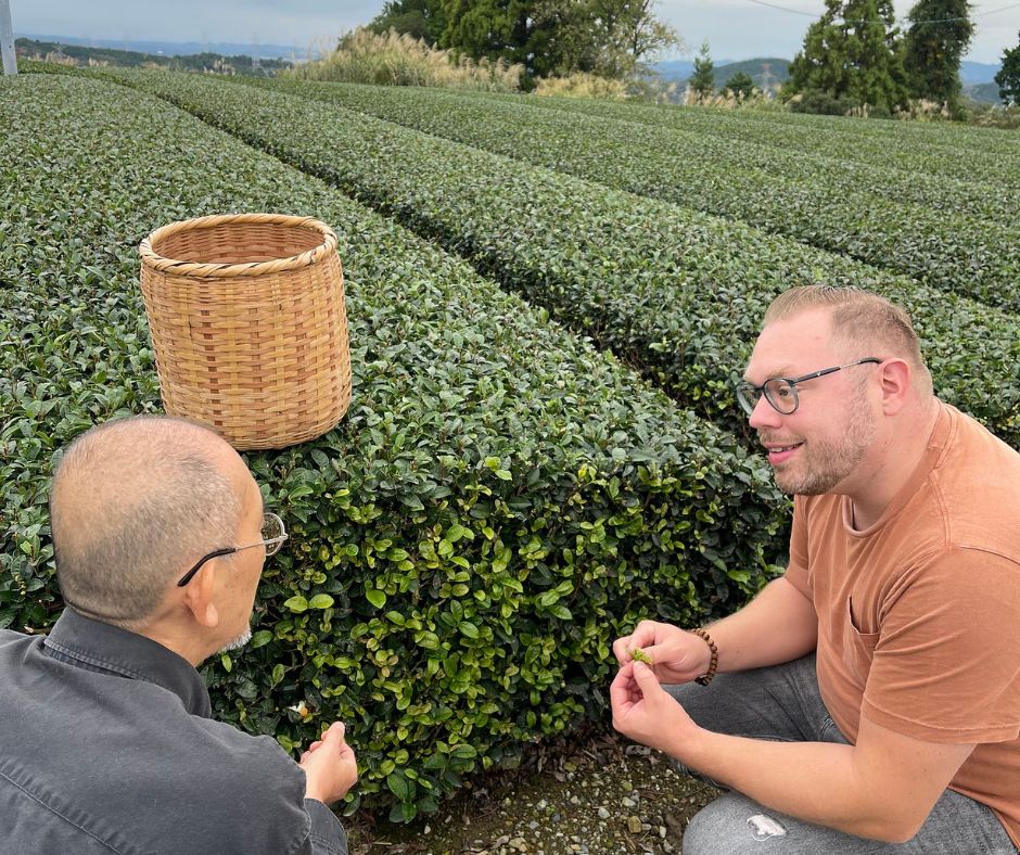 Es sind nur etwas mehr als eine Stunde Zugfahrt von Tokio nach Kakegawa, nahe der Stadt Shizuoka. Unser Gastgeber Koichi erwartet uns am Bahnhof des kleinen Ortes. Wir steigen in ein Mini-Pausenmobil und fahren kurze Zeit später mitten durch die Teeplantagen. Dann halten wir vor einer riesigen hellgrünen Halle: der Teefabrik dieser Region. Dort werden die Blätter gewaschen, gedämpft, getrocknet und gebürstet. So entsteht der Sencha-Tee, hochwertiger grüner Tee, der in heißem Wasser zieht, aber nicht kochend heiß, sonst wird er zu bitter.