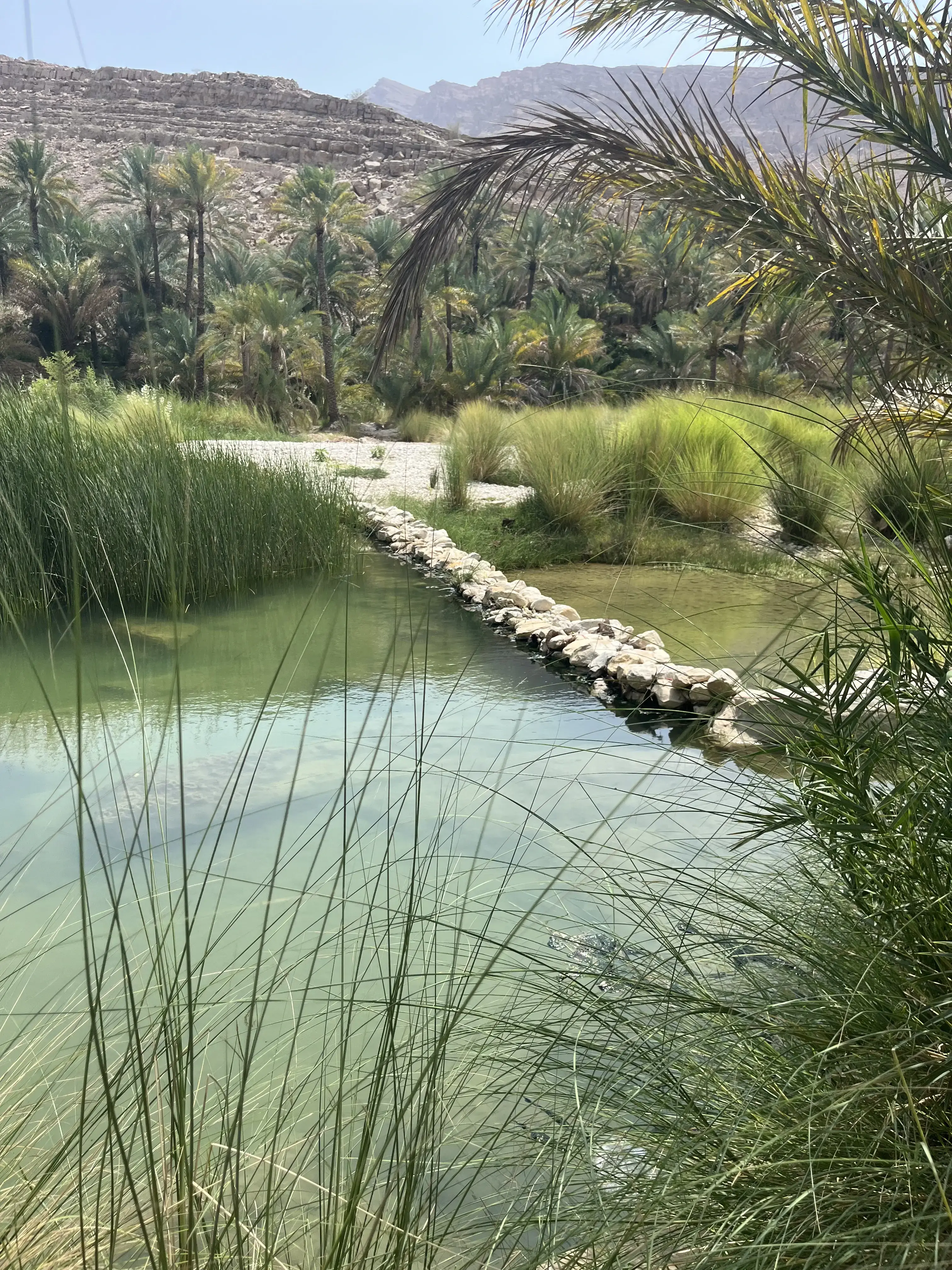 Die Wadis in Oman sind grüne Oasen zwischen Felsen und Bergen.