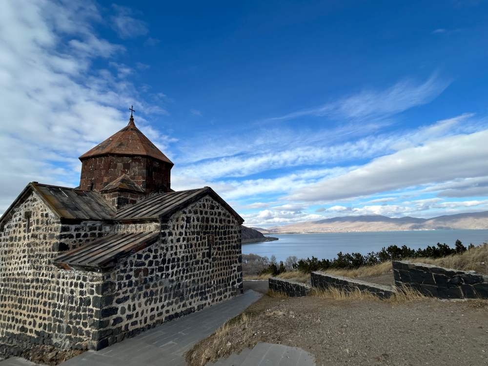 Sevanavank ist ein historischer Klosterkomplex, der spektakulär auf einer Halbinsel am Sevansee, einem der größten hochgelegenen Süßwasserseen der Welt, liegt. Er wurde im 9. Jahrhundert gegründet und bestand ursprünglich aus mehreren Kirchen und Mönchszellen, von denen heute vor allem die Kirchen Surb Arakelots und Surb Astvatsatsin erhalten sind. Durch seine Lage hoch über dem Wasser bietet Sevanavank einen herrlichen Blick über den See und die umliegenden Berge. Das Kloster spielte jahrhundertelang eine wichtige religiöse und kulturelle Rolle und ist heute eines der bekanntesten und meistbesuchten Denkmäler Armeniens.