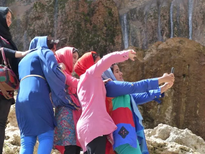 Doch ich beginne die Reise in Shiraz. Tagsüber besuche ich die Hügel rund um Shiraz, Ausläufer des Zagrosgebirges. Ich erkunde das Tal von Margoon und das Tal mit dem fantastischen Namen 'Tal des Verlorenen Paradieses'. Beide Täler liegen rund um Sepidan, ein echtes Ski-Gebiet, wohin die Einwohner von Shiraz im Winter fahren, um Ski zu fahren. Das Tal von Margoon ist ein schönes, grünes Tal, in dem im Sommer viele Qashgai-Nomaden ihre Zelte aufschlagen – es ist wunderbar, dieses Gebiet dann zu besuchen. Auch im Frühjahr ist es hier sehr schön, besonders wenn die Obstbäume blühen und die Blumen zu blühen beginnen. Viele iranische Familien kommen hierher, um zu picknicken, und bevorzugen dabei den Wasserfall von Margoon. Im Tal auf dem Weg zum Verlorenen Paradies sind einige weitere Dörfer zu sehen. Das Verlorene Paradies selbst ist ein Tal mit einem Gebirgsbach, entlang dessen Sie einen Spaziergang machen können. Auch hier ist es ein beliebter Ort zum Picknicken. Für iranische Familien bleibt es einfach das beliebte Ausflugsziel, um der Hitze und Trockenheit zu entfliehen und irgendwo in den erfrischenden Bergen, in einer grünen Umgebung, vorzugsweise bei Wasser, zu picknicken.