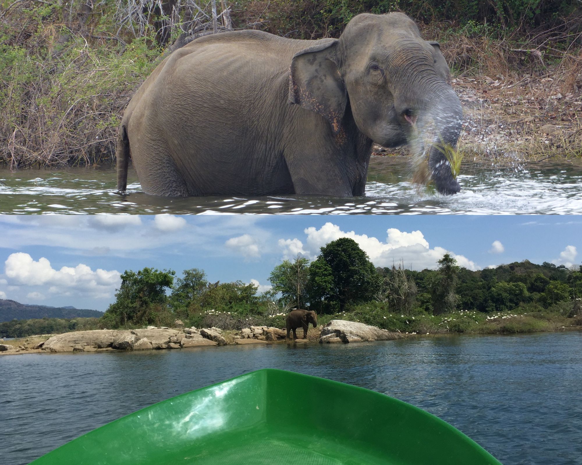 In einem Holzboot gleiten wir über schmale Wasserwege, vorbei an Mangroven und dichtem Dschungel. In der Ferne badet eine Elefantenherde im Wasser – halb untergetaucht, ihre Ohren glitzern im Sonnenlicht. Keine Jeeps, keine Touristen, nur Sie, die Natur und der Augenblick.