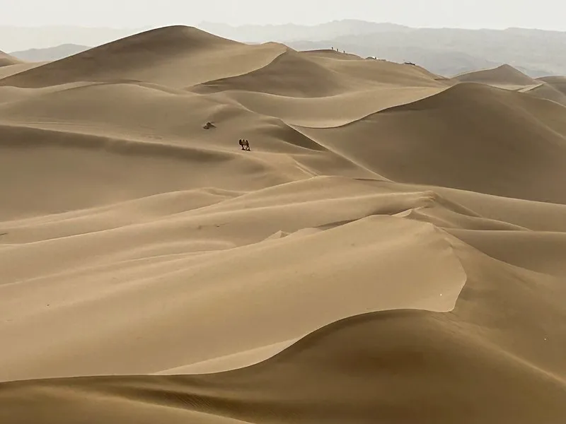 Besuchen Sie bei Sonnenuntergang die Sanddünen des Mingsha Shan, die am Stadtrand liegen. Es ist ein anstrengender Aufstieg, denn die höchsten Dünen erreichen bis zu 1700 Meter, aber die Aussicht von oben ist wirklich fantastisch. Wenn Sie nicht wandern möchten, können Sie sich auch mit dem Kamel hinaufbringen lassen. Für den Abstieg können Sie rodeln oder, für die Mutigen, sogar mit dem Fallschirm hinuntergleiten.