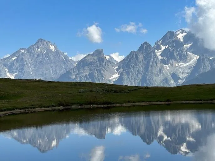 Sie können auch eine andere Wanderung mit fantastischen Ausblicken zu den Koruldi-Seen wählen (nur in den Sommermonaten). Sie werden dann mit einem Jeep nach oben gebracht und können weiter zu diesen kleinen Seen (mit prachtvollen Spiegelungen der umgebenden Berge im Wasser) wandern und ein Stück nach unten gehen, bis zu einem Punkt, an dem der Jeep Sie abholt. Unterwegs genießen Sie einen wunderschönen Panoramablick auf die Berggiganten des Kaukasus.