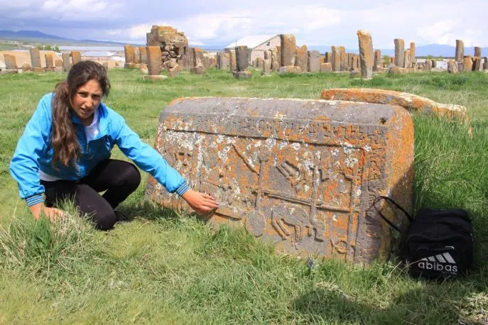 Auf dem Weg zum Selim-Pass liegt am Ufer des Sees das Dorf Noratus. Hier finden Sie einen Friedhof mit einer großen Anzahl von Kachkars. Dies sind große liegende Platten oder Stelen, die mit Rosetten- und Kreuzmustern verziert sind und zur Erinnerung an ein wichtiges Ereignis dienen. Eine schöne Stelle für einen kurzen Halt. Dann beginnt der Aufstieg zum 2.400 m hohen Selim-Pass. Dies war bereits zur Zeit der Seidenstraße ein wichtiger Durchgang über Handelsstraßen. Auf dem Pass finden sich die Überreste einer gut erhaltenen Karawanserei aus der Zeit, als die Seidenstraße Ost und West verband.
