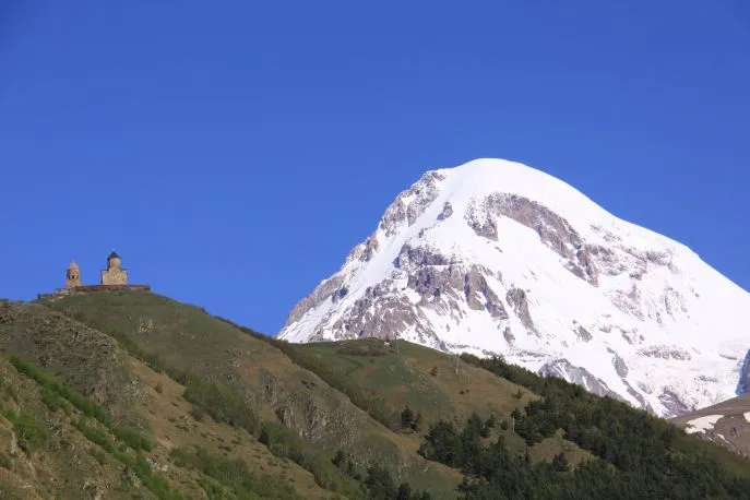 Sie passieren das wichtigste Skigebiet des Landes, Gudauri. Während des Aufstiegs zum 2.379 m hohen Jvari-Pass kommen Sie an einem bunten sowjetischen Denkmal zur Ehrung der russisch-georgischen Freundschaft vorbei. Der Pass bietet bei schönem Wetter einen herrlichen Blick auf die schneebedeckten Gipfel des Kaukasus. Mitte 2019 wurde eine über 7 km lange Seilbahn über den Jvari-Pass von Gudauri zu einem anderen Skizentrum, Kobi, in Betrieb genommen. Anschließend fahren Sie durch ein schönes, weites Tal in Richtung Stepantsminda.