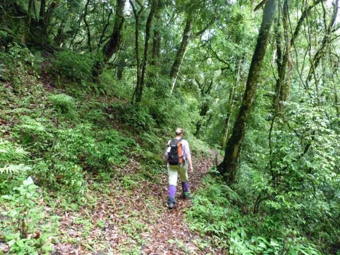 Heute unternehmen Sie einen zweistündigen Aufstieg von 500 Metern durch einen feuchten Wald nach Pemi. Der Pfad ist schmal und steil und führt Sie zu einer Wiese auf dem Bergrücken. Von der Wiese verläuft der Weg weiter durch den Wald, bis Sie die Hütte des Schäfers erreichen. Sie übernachten hier auf einer Höhe von 2450 Metern.