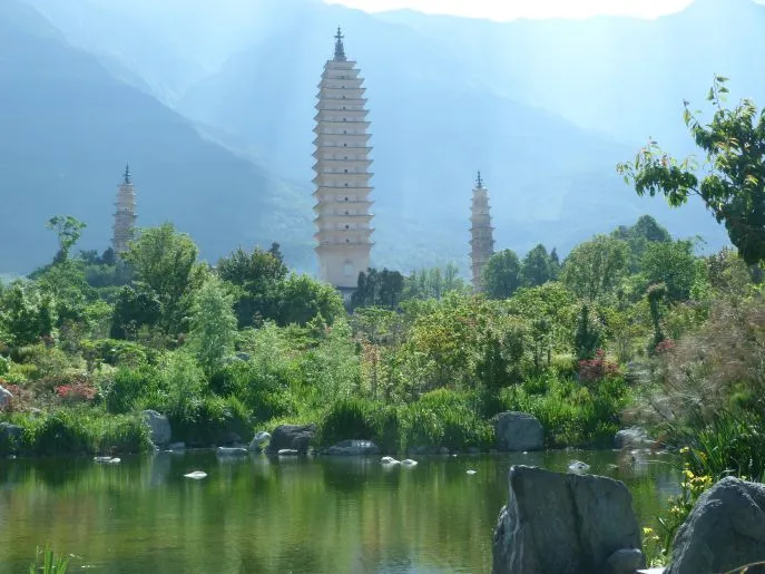 Dali liegt malerisch am Fuße des Cang-Gebirges, in der Nähe des großen flachen Erhaimeeres. Nicht weit außerhalb der Stadt stehen drei charakteristische Tang-Pagoden in der Landschaft. Die Umgebung eignet sich hervorragend für Wanderungen, Fahrradtouren und Bootsausflüge. So können Sie beispielsweise eine wunderschöne Wandertour zu Wasserfällen zum im Gebirge versteckten Zhonghe-Kloster unternehmen.