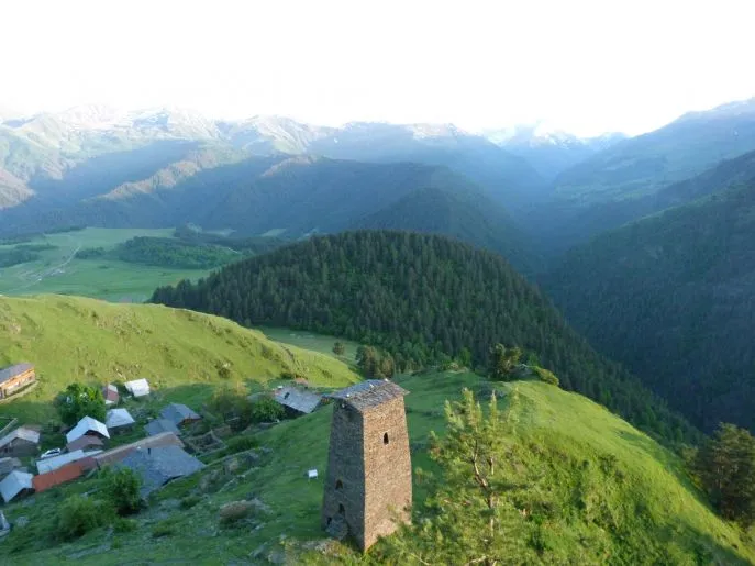 Mitten im Kaukasusgebirge finden Sie hier traditionelle Steindörfer mit ihren typischen Wachtürmen. Dieses Gebiet ist nur von Mitte Juni bis Ende September zugänglich. Es ist die einzige Region des Landes, die nicht an das Stromnetz angeschlossen ist. Glücklicherweise gibt es heutzutage aber Solarpanels, die für Licht und warmes Wasser sorgen.