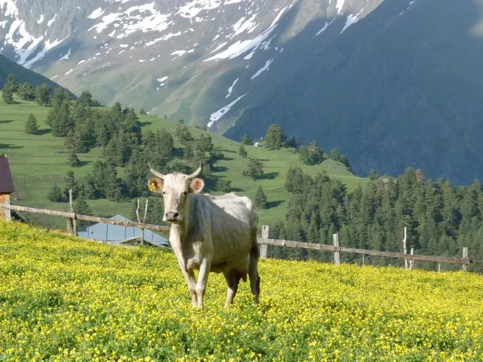 Es ist eine wunderschöne Fahrt nach Omalo, der größten Siedlung von Tusheti. Laut einer BBC-Dokumentation führen Sie die Route über eine der „gefährlichsten Straßen“ der Welt. Das erscheint etwas übertrieben, es handelt sich vor allem um eine sehr schöne Bergstraße, die Sie von der Ebene durch eine üppig bewachsene Schlucht immer höher bringt, bis Sie den 2900 Meter hohen Alano-Pass erreichen. Bei klarem Wetter haben Sie einen wunderbaren Blick auf die schneebedeckten Gipfel des Kaukasus. Nach dem Pass steigen Sie durch eine atemberaubend schöne Bergregion ab. Sie sehen die jahrhundertealten Dörfer von Tusheti mit ihren charakteristischen Steinhäusern und imposanten Wachtürmen. Sie verbringen die Nacht in oder nahe Omalo in einem einfachen Gästehaus.