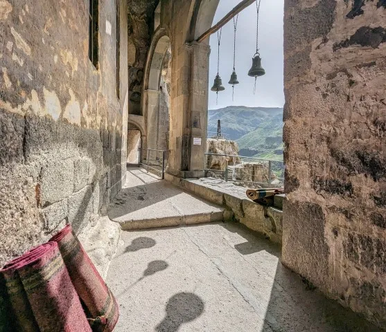 Von Akhaltsikhe reisen Sie über das 'verborgene' Kloster Sapara und die Khertvisi-Festung, deren älteste Überreste aus dem 2. Jahrhundert stammen, zur berühmtesten Höhlenstadt des Landes: Vardzia. Es handelt sich eher um ein Kloster im Erusheti-Gebirge entlang des Mtkvari (Kura) Flusses, das aus dem 12. Jahrhundert stammt. Es wurde zum Schutz vor den Mongolen erbaut und wurde leider im 13. Jahrhundert durch ein Erdbeben zerstört, wodurch die Höhlen von außen sichtbar wurden. Das Komplex ist etwa 500 m lang und weist viele Höhenunterschiede auf. Hier erkennen Sie deutlich die alten Kirchen und die Aufenthalte der Mönche. Das Tal, durch das der Kura-Fluss fließt, ist wunderschön.