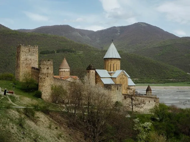 Alternativ fahren Sie über Tianeti in Richtung der Georgischen Heerstraße (Georgian Military Highway) und Ananuri. Diese Straße verbindet seit Jahrhunderten Russland und Georgien durch den Kaukasus. Sie wurde einst sowohl von Eindringlingen als auch Händlern genutzt und im 18. Jahrhundert vom russischen Militär fertiggestellt. Legen Sie einen Zwischenstopp beim Klosterkomplex von Ananuri aus dem 17. Jahrhundert ein, malerisch gelegen am Aragwi-Fluss und dem Schinwali-Stausee. Das Komplex umfasst zwei Kirchen mit Inschriften, eine schöne Fassade und Fresken.