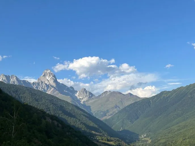 Der Fahrer bringt Sie von Becho zum Ausgangspunkt der Wanderung durch die Wälder zum Ushba-Wasserfall am Fuß des Ushba-Berges (4700 Meter). Ein steiler Aufstieg führt Sie zur Spitze des Wasserfalls, wo Sie einen herrlichen Blick auf den Ushba-Gletscher haben. Je nachdem, wie hoch Sie wandern, beträgt die Wanderzeit 5-8 Stunden. Am Nachmittag kehren Sie zurück und reisen weiter nach Mestia, dem größten Dorf der Region.