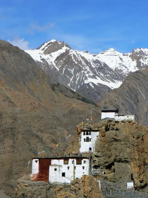 Durch das Spiti-Tal reisen Sie nach Kaza. Nach etwa einer Stunde Fahrt erreichen Sie Dhankar. Dies ist eines der spektakulärsten Klöster im gesamten Himalaya. Auf bizarren Felsspitzen in etwa 4000 Metern Höhe wurde ein Kloster an einem Ort erbaut, wo es absolut unmöglich erscheint, etwas zu errichten. Einmal oben angekommen, ist auch die Aussicht atemberaubend. Sie blicken über das Tal, in dem die Pin- und Spiti-Flüsse zusammenfließen. Im kleinen Kloster selbst können Sie jahrhundertealte Thangkas bewundern, von denen einige über 1000 Jahre alt sind.