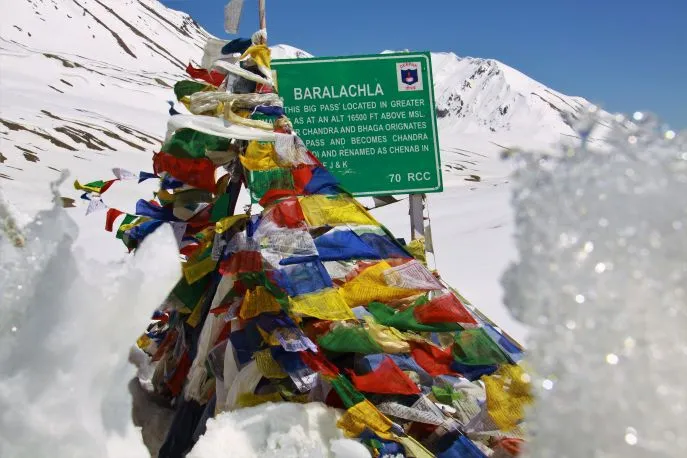 Von Keylong aus fahren Sie in sieben Stunden nach Sarchu. Sie passieren zwei hohe Pässe, darunter den Baralachala, der 5000 Meter hoch ist. An den Pässen wehen die Gebetsfahnen über Haufen von Manisteinen. Sie halten kurz an, um den wundersamen Ausblick auf die vielen Berggipfel zu genießen, und legen natürlich einen kleinen Stein hinzu. Die Übernachtung erfolgt in einem Zeltlager in Sarchu auf 4200 Meter Höhe.