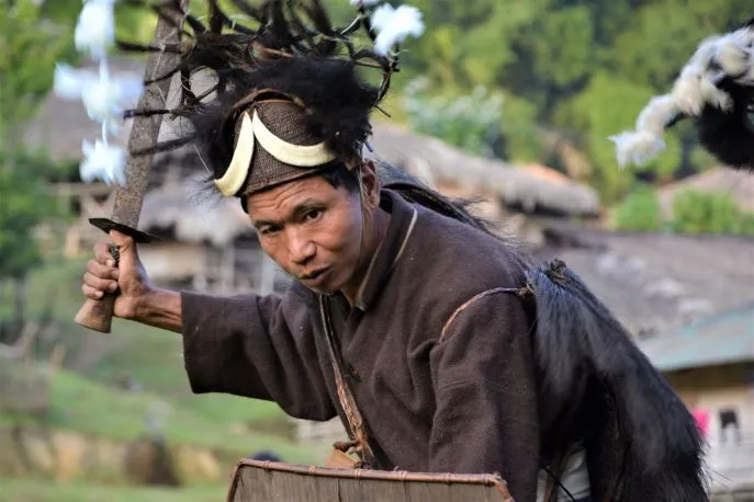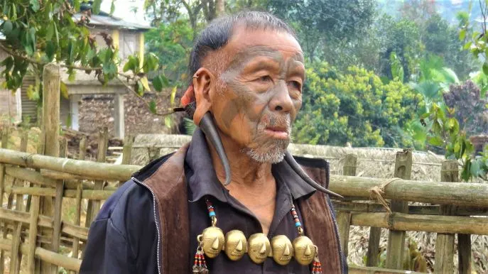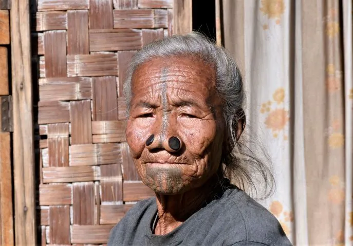 Rund um Mon leben die Konyak Naga. Sie besuchen einige Dörfer dieser ehemaligen Koppenschneller. Sie tragen Gesichtstattoos und große Hörner in ihren Ohren. Die Konyaks werden noch immer von Häuptlingen regiert, die als Anghs bekannt sind. Am Morgen besuchen Sie das Dorf Shangnyu, wo Sie ein einzigartiges Stück Holzkunstwerke sehen können. Es handelt sich um ein 7 Meter langes und 4 Meter hohes Fruchtbarkeitssymbol, das aus einem einzigen Stück Holz gefertigt ist.