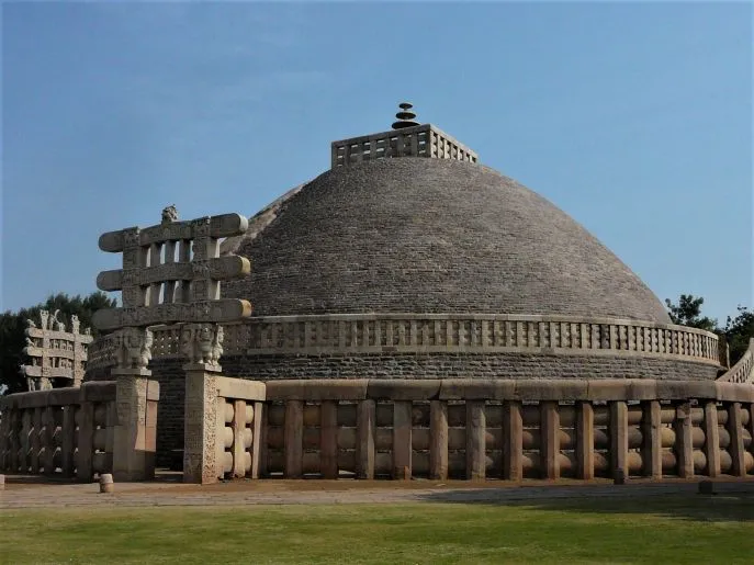 Von Bhopal fahren Sie nach Sanchi, einem friedlichen Dorf etwa siebzig Kilometer nordöstlich von Bhopal. Es ist vor allem bekannt für seine alten buddhistischen Bauwerke. Obwohl Sanchi an sich keinen direkten Bezug zum Leben Buddhas hat, war es der legendäre Kaiser Ashoka – der zum Buddhismus konvertierte – der hier im 3. Jahrhundert v. Chr. die ersten Stupas errichten ließ. Im Laufe der Jahrhunderte wurden dort immer mehr religiöse Gebäude hinzugefügt, und bald entwickelte sich Sanchi zu einem der wichtigsten buddhistischen Zentren der Region. Als sich später das Hinduismus über Indien verbreitete, fiel der Ort jedoch in den Verfall und schließlich in Vergessenheit. Erst gegen Ende des 18. Jahrhunderts begann man mit der Restaurierung und Rekonstruktion des alten Sanchi.