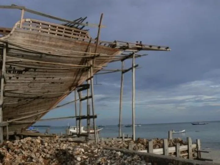 Ihr hölzernes Segelschiff ist weltberühmt und wird noch immer auf die gleiche Weise gebaut wie vor hunderten von Jahren. Lange Holzbretter werden eins nach dem anderen übereinandergestapelt, durch die dann lange Holzstifte geschlagen werden, die später abgesägt werden. Alles von Hand nach ihrer eigenen alten Bauweise. Ihre Pfahlhäuser stehen neben den Booten, direkt am Sandstrand. Ihre Kinder spielen unten am Boot mit Holzspänen und abgeflexten Holzstiften, die ihre Väter beim Versäubern der Seiten des Bootes hinunterfallen lassen. Andere Kinder jagen rollenden Rollerreifen hinterher, die sie mit einem Stock immer in Bewegung halten. Ein Junge versucht, einen Drachen steigen zu lassen. Der Drache ist selbst aus wunderschönem orangefarbenem und weißem Drachpapier gemacht. Die Schnur hat er um eine rostige Dose gewickelt. Da geht der Drache in die Luft und schwebt ruhig über dem hölzernen Flachbau seines Vaters. Stolz zeigt er es mir. Schau mal, wie hoch mein Drache fliegen kann!