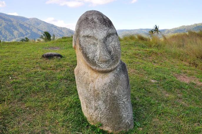 Heute begibt sich Ihre Familie auf eine abenteuerliche Fahrt mit dem Jeep in den weitläufigen Lore Lindu Nationalpark. Bis vor einigen Jahrzehnten war dieses Tal nur mit einem Missionsflugzeug erreichbar; jetzt können Sie es auf einem größtenteils unbefestigten, aber in der Trockenzeit einigermaßen befahrbaren Weg in etwa 4–5 Stunden erreichen. Dies ist eine schöne Straße durch den tropischen Regenwald. Sie steigen langsam, aber sicher an, passieren einen Berghang und sinken auf eine Höhe von etwa 500 Metern. Im Badatal sowie in einigen anderen Tälern im Lore Lindu Park finden Sie die beeindruckendsten Megalithen, die in Indonesien zu finden sind. Besonders eindrucksvoll sind die primitives Statuen und die verzierten Steingefäße. Ihr Ursprung ist bis heute ein Rätsel. Der größte von ihnen, mit einer Länge von 440 cm, ist das schiefgelegene Palindo. Die Nase, runden Augen, Arme, Hände und das männliche Geschlecht sind deutlich abgebildet.