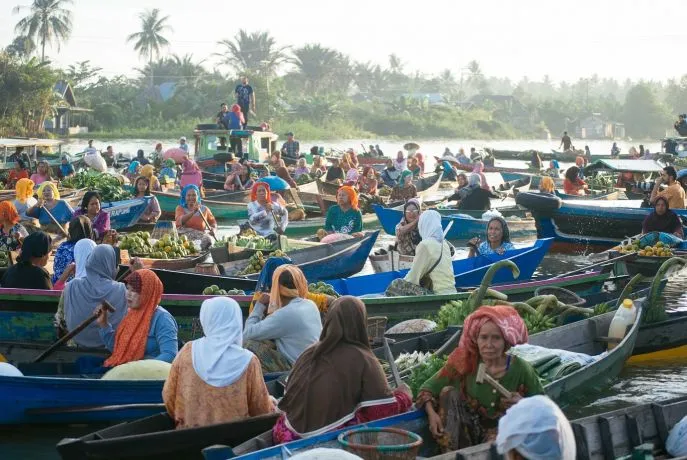 Besuch des lebhaften schwimmenden Marktes in Banjarmasin