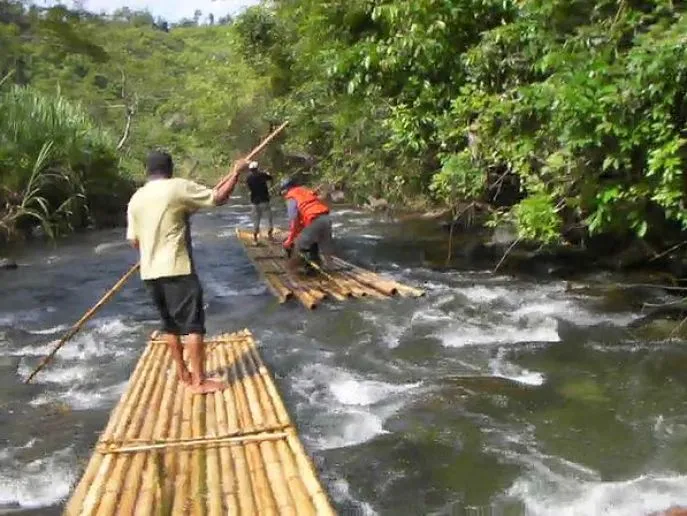 Am Morgen steigen Sie auf ein Bambusfloß (lanting) und fahren ca. 3 Stunden über den Amandit-Fluss. Diese Art von Bambusflößen wird nicht nur für Touristen gebaut. Sie sind seit Generationen das Transportmittel, um Fracht flussabwärts zu befördern. Nach der Fahrt wird das Floß auseinander genommen und die einzelnen Bambusstämme verkauft.