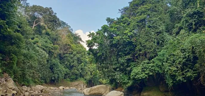 Alternativ können Sie mit Ikbal eine Dschungelwanderung an der Schlucht entlang unternehmen, die ungefähr drei Stunden dauert. Er zeigt Ihnen die verschiedenen Bäume, Pflanzen und Insekten. Hoffentlich sehen Sie die Thomas-Languren, die in die hohen Bäume springen. Auch nach der Dschungelwanderung genießen Sie ein selbstgemachtes Mittagessen bei ihm zu Hause.