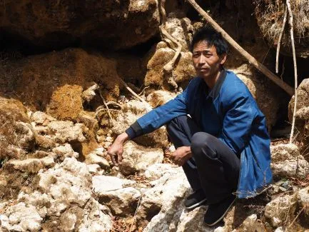 Von der von chinesischen Touristen stark frequentierten Stadt Lijiang im Nordwesten von Yunnan sind Sie in wenigen Stunden Fahrt völlig abseits der ausgetretenen Pfade in unberührten Berggebieten, wo Massentourismus und Modernisierung noch Meilen entfernt sind. Zum Beispiel die Wanderung, die ich mit Herrn He mache, zum versteckten Bergdorf Baoshan, wo das Naxi-Volk immer noch im Einklang mit den Jahreszeiten lebt. Es ist eine anstrengende Tour in den unberechenbaren Ausläufern des Himalayas, quer durch Wälder und Wiesen, entlang des türkisfarbenen Jinsha-Flusses (einem Nebenarm des Jangtse) und mit den letzten paar Kilometern ununterbrochenen atemberaubenden Ausblicken auf die Bergtäler, mit Baoshan in der Ferne, das vollständig an einer riesigen Felswand gebaut ist. Mein beruhigender Gedanke, dass die Route von hoch nach niedrig führt und also vermutlich wenig Steigungen und Klettereien enthält, muss ich bald korrigieren. Nach der x-ten steilen Abfahrt habe ich das Gefühl, dass meine Zehen jeden Moment durch die Spitze meiner Schuhe drücken. Und weil ich mich groß darstellen möchte und nicht ständig um Hilfe bitten will, rutsche ich manchmal sitzend nach unten, während ich versuche, Herrn He's erstaunten Blick zu ignorieren. Könnte ich ihm doch nur erklären, dass wir solche Landschaften in unserem flachen Holland nicht kennen!