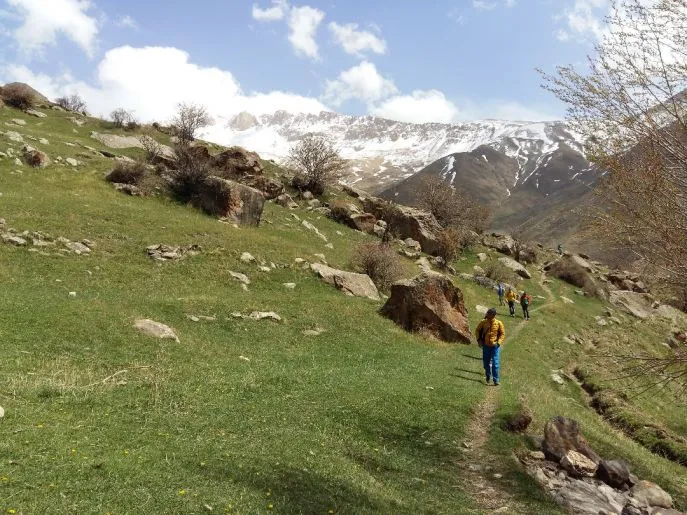 Sie reisen ins Bergdorf Nava, das etwa 100 Kilometer außerhalb von Teheran liegt. Nava befindet sich auf 2400 Metern, an der Südflanke des Mt. Damavand, dem höchsten Berg Irans. Sie wandern in 3-4 Stunden von Nava zur Azoo-Hochebene. Eine wunderbare Wanderung, insbesondere im Frühjahr, wenn alles blüht und Sie einen Blick auf den strahlend weißen Gipfel des Damavand haben. Anschließend fahren Sie weiter nach Reineh. Auf dem Weg besuchen Sie die Höhlen von Kafarkeli. Sie übernachten in einer Berghütte in Reineh.