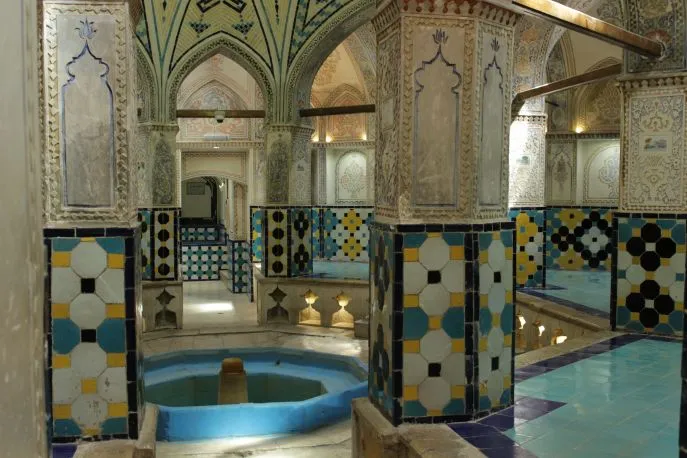 Die schönsten Häuser wohlhabender Händler liegen eng beieinander im Westen der Stadt. Sie können beispielsweise das Khan-e Tabatabei besuchen, das über gleich vier Innenhöfe verfügt, prachtvoll verzierte Zimmer mit Wandmalereien und schön gefärbten Glasfenstern. In der Nähe befindet sich das schöne Khan-e Abbassi. Ein weiteres, nicht zu verpassendes Haus ist das Bujerdihaus, eines Händlers von Samowaren. Dieses Haus hat einen schönen Innenhof und einige beeindruckende Fresken von Kamal al-Molk, einem der bekanntesten Künstler Irans. In der Nähe liegt eines der schönsten Hammams (Bäder) des Iran: das Hammam-e Sultan Mir Ahmed, mit schön gefärbten Fliesen in verschiedenen Räumen. Besuchen Sie es bei Sonnenuntergang und genießen Sie von der Dachterrasse den herrlichen Blick über Kashan. Der Basar von Kashan ist nicht sehr groß und relativ übersichtlich. Verpassen Sie nicht die schöne Caravanserai und das Teehaus hier.