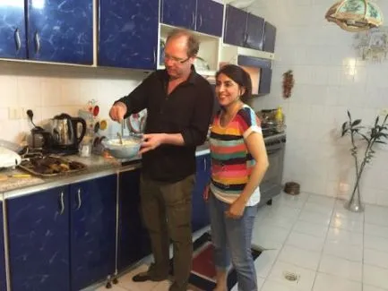 Willkommen bei Sahar und Mohsen. Diese engagierten Einwohner von Shiraz heißen Sie herzlich in ihrem Zuhause willkommen. Die Familie von Sahar lebt in einem schönen Haus am Rande des Zentrums. Sie empfangen gerne Gäste und können hervorragende Gerichte zaubern. Gemeinsam mit Marzieh, der Mutter von Mohsen, und dem Freund Hossein lernen sie Ihnen gerne die feinen Kniffe der persischen Küche. Gegen vier Uhr kommen Sie bei der Familie an und nach der ersten Begrüßung stehen Sie gemeinsam in der Küche. Sie bereiten zusammen eine umfangreiche Mahlzeit mit vielen iranischen Gerichten und einigen Spezialitäten aus Shiraz zu. Vielleicht bereiten Sie Fesenjan zu, ein berühmtes iranisches Gericht aus Hähnchen, das stundenlang in einer Sauce aus Walnüssen und Granatapfel gekocht wird. Außerdem lernen Sie, Chelo zuzubereiten, den köstlichen iranischen Safranreis mit seiner gelben Kruste. Und möglicherweise auch Kalam Polo, eine Spezialität aus Shiraz, Reis mit kleinen Hackbällchen und frittiertem Kohl. Während des Kochens lernen Sie nicht nur die köstliche persische Küche, sondern können auch ausführlich diese Familie kennenlernen. So erfahren Sie mehr über das Leben 'hinter dem Schleier' im Iran. Und natürlich genießen Sie am Abend eine reichhaltige und köstliche iranische Mahlzeit.