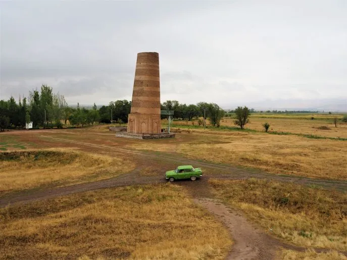 Auf dem Rückweg zur Hauptstadt können Sie die Ausgrabungen bei Burana besuchen. Hier steht der Burana-Turm – eines der wenigen historisch interessanten Gebäude in Kirgisien. Dies ist das einzige, was von der 11. Jahrhundert-Hauptstadt der Karakhaniden, Balasagun, übrig geblieben ist. Im Jahr 1015 wurde hier der Dichter Yusup Balasagun geboren, bekannt durch sein langes episches Gedicht Kutadgu Bilig (das Wissen, das Glück bringt). Die Stadt wurde nicht, wie oft üblich, von den Mongolen zerstört, sondern in Gobalik (gute Stadt) umbenannt. Seit dem 15. Jahrhundert ist diese Stadt jedoch in Vergessenheit geraten. Der Turm liegt zehn Kilometer südlich der Stadt Tokmak und wurde 1974 vollständig renoviert. Rund um den Turm befindet sich eine Ansammlung von Steinskulpturen, die von Gräbern in Kirgisien und Kasachstan hierhergebracht wurden. Die Skulpturen stammen aus dem 6. bis 10. Jahrhundert.