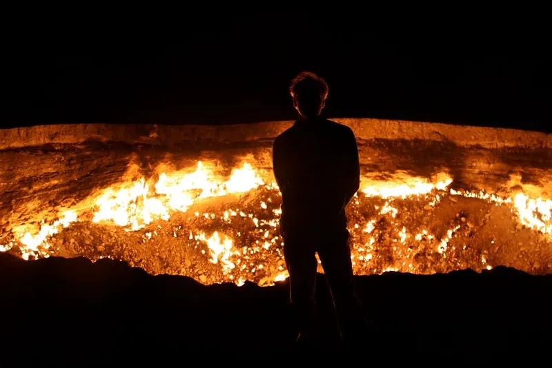 Den zuvor erwähnten Altyn Asyr Bazaar können Sie donnerstags, samstags und sonntags auch auf dem Weg zum Derwaza-Gaskrater besuchen. Dieser spektakuläre Krater, mitten in der Karakum-Wüste, brennt bereits seit Jahrzehnten. Es handelt sich nicht um ein Naturphänomen, sondern um einen Irrtum sowjetischer Geologen. In den 1970er Jahren wurde hier nach Öl und Gas gebohrt. Plötzlich brach der Boden ein und sie entdeckten ein unterirdisches Höhlensystem mit einer Gasreserve. Um das Problem zu lösen, setzten die Geologen das Gas in Brand – und es brennt noch immer.