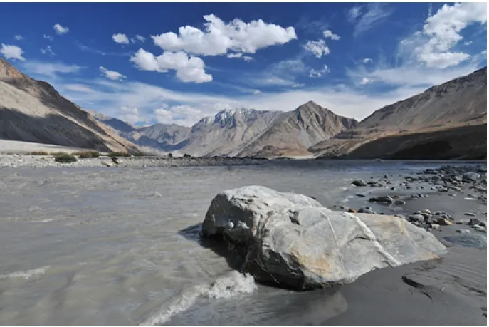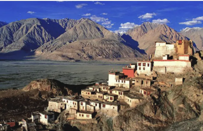 T gegen Mittag (vielleicht etwas spät, falls Straßenarbeiten anstehen) erreichen Sie die Lodge, in der Sie übernachten, gelegen etwas außerhalb des kleinen Dorfes Sumur und in Gehweite des breiten Nubra-Flusses.