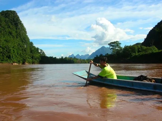 Sie reisen weiter mit einem privaten Boot über den Nam Ou Fluss in das Dorf Nong Khiaw (auch Muang Ngoi genannt, nach dem Distrikt). Nach etwa 2 Stunden Fahrt legen Sie erneut an und steigen in einen Minivan für eine kurze Fahrt zum Nam Ou Wasserkraftwerk. Von dort steigen Sie wieder in ein Boot um und fahren flussabwärts weiter. Es ist eine wunderschöne Fahrt durch eine atemberaubende Umgebung, die mit abgelegenen Siedlungen gefüllt ist, wie zum Beispiel Ban Sob Jaem, wo hauptsächlich Khmu und Hmong leben. Diese Dörfer sind nur mit dem Boot zugänglich.