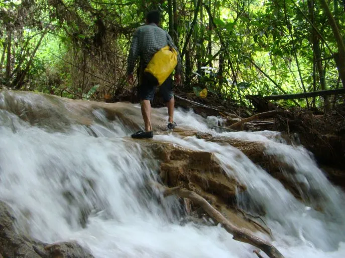 Sie beginnen den Tag mit einer 3-stündigen, einzigartigen Trekkingtour. Zuerst werden Sie in etwa 45 Minuten mit dem Boot über den Fluss zum Khmu-Dorf Ban Don Khoune gebracht. Nachdem Sie das Dorf erkundet haben, beginnt die Wanderung. Zuerst müssen Sie den Hügel hinauf laufen, wobei es anfangs steil bergauf geht. Es ist eine anspruchsvolle Wanderung durch den Dschungel entlang von Flussläufen und den 100 Wasserfällen.