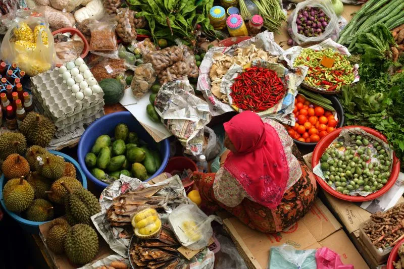 "Abends gehe ich alleine auf die Straße. Die Stadt scheint ausgestorben, aber das Gegenteil ist der Fall. Auf Empfehlung einiger lokaler Freunde betrete ich den Aufzug eines großen, grauen und trostlosen Gebäudes. Der Aufzug bringt mich in den sechsten Stock, obwohl ich keine Ahnung habe, wohin mich der Aufzug bringt. Als sich die Türen öffnen, befinde ich mich auf dem Dach eines Parkhauses, wo sich ein echtes Foodcourt entfaltet. Natürlich sind hier alle Einheimischen zu finden! An verschiedenen Ständen bestelle ich köstliche Gerichte, die von seltsamen Fischsorten bis hin zu einheimischen Gemüsesorten reichen, und genieße den Abend. "Selamat Makan!"