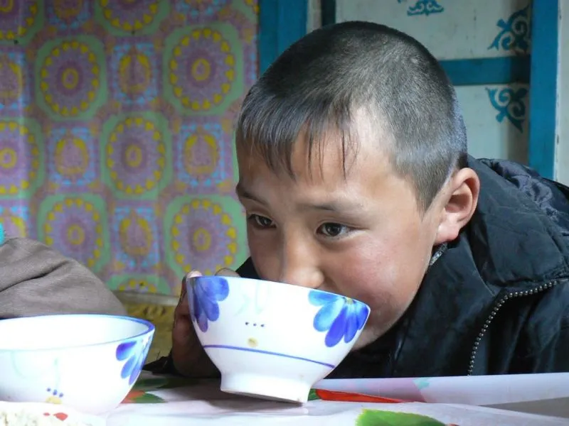 Keine Reise in die Mongolei ist vollständig, ohne die fermentierte Pferdemilch – genannt "Airag" – zu probieren. Dies ist das Superfood der nomadischen Bevölkerung, die von ihrem Vieh lebt. Das wichtigste Tier in der Mongolei ist das Pferd, weshalb die Pferdepflanzpopulation größer ist als die der Menschen. Das Melken der Pferde geschieht manchmal bis zu sechs Mal am Tag von Juli bis Ende November. Die Euter der Stuten sind klein und es ist viel Kraft erforderlich, um zu melken. Die frische Stutenmilch wird in einer Ledertasche aufbewahrt, einem Khukhuur, die bei der Eingangstür hängt und jedes Mal gerührt wird, wenn man das Ger betritt oder verlässt. Der Fermentationsprozess dauert etwa zwei Tage, wobei Bakterien und Hefe die Laktose abbauen und Alkohol (3%) produzieren. Der Geschmack lässt sich als Mischung aus hellem Bier und Vollmilch beschreiben, ein wenig sauer, aber angenehm genug, um sich daran zu gewöhnen. Die Nomaden trinken es wie Wasser, während wir Westler in der Regel etwas mehr Mühe mit dem ersten Schluck haben. Die mongolische Gastfreundschaft verlangt, jedem Besucher eine Schale Airag anzubieten. Genießen Sie!