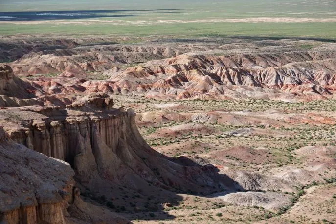 Wir verlassen die Hauptstadt und reisen südwärts in die Gobi-Wüste. Sofort fällt die enorme Leere und Weitläufigkeit des Landes auf; es leben nur 2,5 Millionen Menschen in einem Land, das fünfmal so groß ist wie Frankreich, von denen die Hälfte auch noch in Ulan Bator wohnt. Asphalt gibt es im Land kaum, nur einige Hundert Kilometer rund um die Hauptstadt und das war's dann auch. Auf dem Weg sehen Sie wahrscheinlich schon bald die ersten Gers. Der erste Halt ist Baga Gazriin Chuluu. Hier entdecken Sie jahrhundertealte Felsformationen, wo Sie klettern und wandern können.