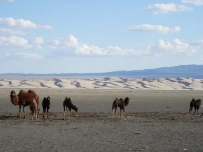 Khongor liegt etwa sieben Stunden Fahrt von der Yolvallei entfernt und ist bekannt für die Sanddünen, die auch als "singender Sand" bezeichnet werden. Die Sanddünen erstrecken sich über ein Gebiet von 180 Kilometern und erreichen manchmal Höhen von bis zu 80 Metern. Zwischen den Dünen gibt es fruchtbare, grüne Streifen entlang des Flusses Khongoriin Gol. Genießen Sie hier in Ruhe die Umgebung und den Blick auf die wunderschönen Sanddünen. Auch hier können Sie wandern und von den Dünen rutschen. Zudem haben Sie die Möglichkeit, eine Kamel-Farm zu besuchen.