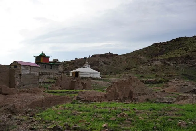 Am Rand des Klosters, das aus Steinen von Karakorum erbaut wurde, liegt eine einsame steinerne Schildkröte, das einzige Relikt des einst so berühmten Karakorum.