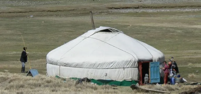 Sie reisen zum Tsambaravgd Uul Nationalpark. Hier steht der charakteristische Tsambaravgd Uul-Berg (4208 Meter). Am Fuß des Berges finden Sie verschiedene kasachische Lehmhäuser in kleinen Dörfern. Hier übernachten Sie in den Häusern kasachischer Familien, die in den kurzen Sommern oft in einer Jurte leben und den Rest des Jahres in Lehmhäusern wohnen. Sie übernachten bei einer Uriankhai- oder kasachischen Familie. Eine Uriankhai-Jurte ist beispielsweise anders aufgebaut und eingerichtet als die der Kasachen. Es ist interessant, die Unterschiede in der Innen- und Außengestaltung der verschiedenen Jurten kennenzulernen. So werden die Filzdecken der Uriankhai-Jurte mit 8 vertikal verlaufenden Seilen zusammengehalten, während die mongolische Jurte mit vier Seilen auskommt. Eine kasachische Jurte ist zudem wieder anders eingerichtet als eine mongolische Jurte. Suchen Sie nach den Unterschieden! Falls Sie in einem Lehmhaus übernachten, müssen wir nach einer Jurte suchen, die wir besuchen können. Letztendlich hängt es vom Klima des jeweiligen Jahres ab, ob noch Jurten zu finden sind oder nicht!