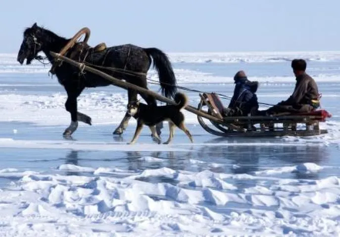 Ein kurzer Flug bringt uns zum Khovsgol-See, der in der mongolischen Taiga liegt. Dieser wunderschöne See ist im Winter vollständig gefroren. Rund um den See finden verschiedene Aktivitäten statt, darunter traditionelle Tänze, schamanistische Tänze und sogar ein echtes Schlittschuhrennen. Es ist ein wunderbares Erlebnis, mit einer Schlittenfahrt über den gefrorenen See zu gleiten.