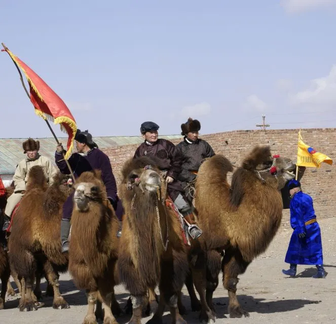 Heute erleben Sie das Kamelfestival, bei dem die stolzen Bewohner der Gobi ihre Kamele präsentieren und in voller Montur Kamelwettbewerbe veranstalten. Viele Einwohner kommen zu diesem Festival. Das Kamelfestival wurde ins Leben gerufen, um die Bactrian-Kamele zu schützen. In den letzten Jahren hat die Population stetig abgenommen. Dieses Zehntausend-Kamele-Festival (Tumen Temee-Festival) soll Einnahmen für die Kamelhirten generieren, deren traditionelles Leben zunehmend bedroht ist. Das Festival findet in Bulgan in der südlichen Gobi statt.