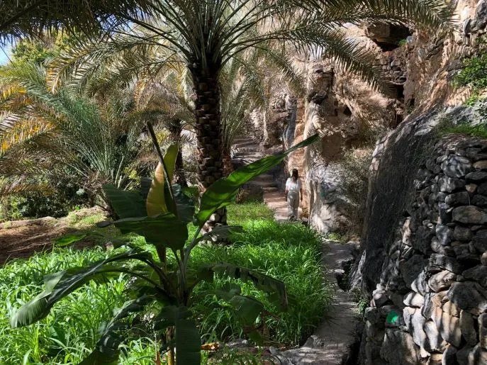Sobald Sie das Plateau von Jebel Akhdar erreicht haben, können Sie einen Spaziergang machen, den sogenannten Village Walk (gekennzeichnet durch dreifarbige Schilder) durch die Oase und die dichten Dattelplantagen. Natürlich müssen Sie auch bei Diana's Point gewesen sein! Der Ort, von dem aus Lady Di während ihres Staatsbesuchs in Oman über die Berge blickte.