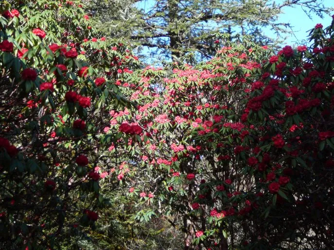 Die Wanderung zur nächsten Etappe, dem Forest Camp, führt, wie der Name schon vermuten lässt, durch einen wunderschönen grünen Wald voller bunter Rhododendren, der Nationalblume Nepals. Es ist ein ruhiger Wanderweg, bis Sie das Camp erreichen.