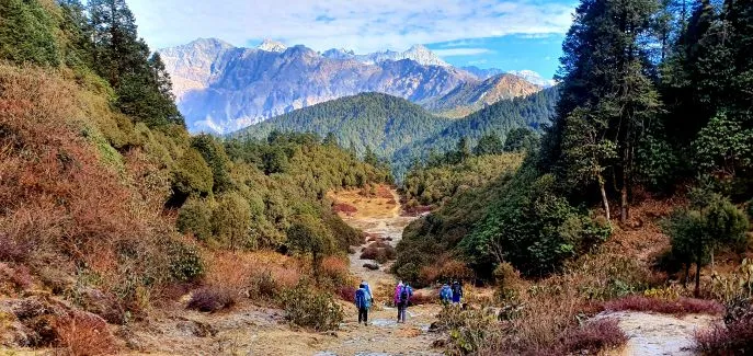 Von Kutumsang aus wandern Sie in den Langtang-Nationalpark. Hier werden Ihre Permits kontrolliert (diese werden von unserem lokalen Vertreter organisiert). Auch heute führt der Weg wieder nach oben. Was das Aufsteigen betrifft, ist dies der anspruchsvollste Tag; Sie überwinden eine Höhe von etwa 800 m und wandern nach Mangengoth (3280 m). Sie durchqueren wechselnde schöne Eichenwälder und gehen über den Yurin Dandar Grat, mit Ausblicken auf Gosaikund und Langtang. Die Wanderung wird heute etwa 3,5 bis 4 Stunden dauern. Von der Lodge aus können Sie zu einem Aussichtspunkt gehen, der wunderbare Blicke über Langtang bietet.