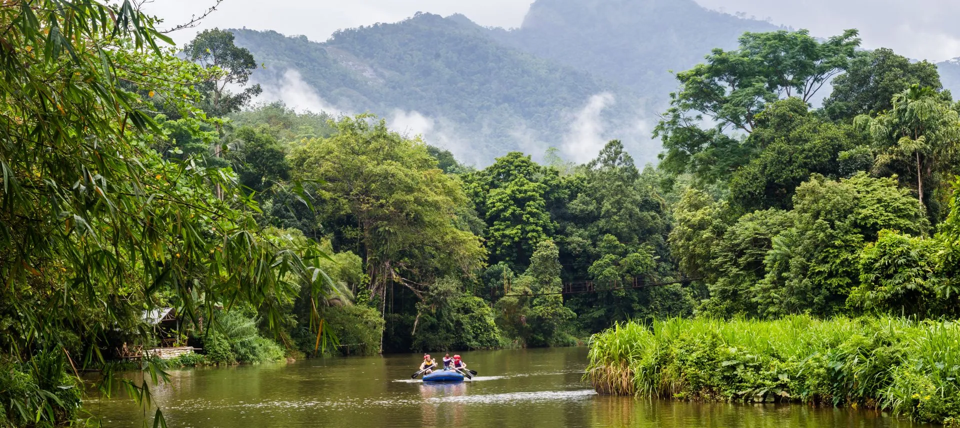 Die abenteuerliche Raftingtour dauert etwa anderthalb Stunden, in denen Sie etwa sechs Kilometer den Fluss hinunterfahren. Wildere Abschnitte wechseln sich mit ruhigen Etappen ab, sodass Sie nicht nur die Spannung der Stromschnellen erleben, sondern auch herrlich treiben und die üppige Natur um Sie herum genießen können. Unterwegs begegnen Sie verschiedenen Stromschnellen, aber es bleibt genügend Zeit, um ruhig zu fahren und die exotischen Landschaften auf sich wirken zu lassen. Haben Sie Lust auf ein erfrischendes Bad? An einem ruhigen Abschnitt des Flusses können Sie aus dem Boot springen und sich ein Stück mit der Strömung treiben lassen – immer ein Favorit bei Teenagern.