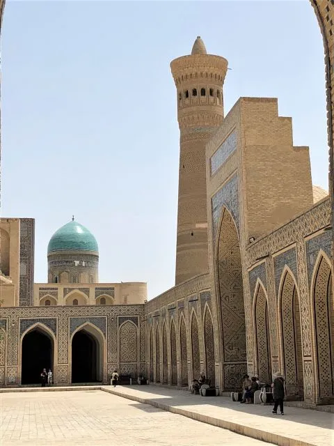 Das Poi Kalyan-Ensemble ist das religiöse Herz von Buchara. Die Kalyan-Moschee stammt aus dem Jahr 1514 und ist die zweitgrößte in Zentralasien. Die Moschee hat eine Fläche von 127 mal 78 Metern und bietet Platz für 12.000 Gläubige. Gegenüber der Moschee steht die Mir-i-Arab-Medresse mit zwei auffällig türkisen Kuppeln. Nicht weit hinter dem Poi Kalyan-Ensemble befinden sich die Ulugh Beg-Medresse und die Abdul Aziz-Medresse. Eines der ältesten Gebäude von Buchara ist die im 12. Jahrhundert erbaute Magok-i-Attari-Moschee. Dies ist eines der wenigen noch erhaltenen Bauwerke der Karakhaniden. Die Moschee wurde an einem Ort erbaut, an dem zuvor ein buddhistischer Tempel, ein zoroastrischer Tempel und eine von Arabern errichtete Moschee standen. Von dem ursprünglichen Bauwerk sind nur noch das Südtor und die Fundamente erhalten, der Rest stammt aus dem 16. Jahrhundert. Das Zentrum der Altstadt ist die Lyab-i-hauz ('Ufer des Beckens'). Im Jahr 1620 wurde hier ein u-förmiges Ensemble erbaut, das die Inspiration für den Registan in Samarkand bildete. Die Medresse ist auffällig mit weißen Vögeln dekoriert. Im Inneren befinden sich jetzt Souvenirläden und einige Werkstätten. Vor der Medresse steht die Statue von Khodja Nasruddin, einem türkischen Sufi-Heiligen des 13. Jahrhunderts, dessen humorvolle und optimistische Geschichten noch immer in Kindererzählungen verwendet werden.